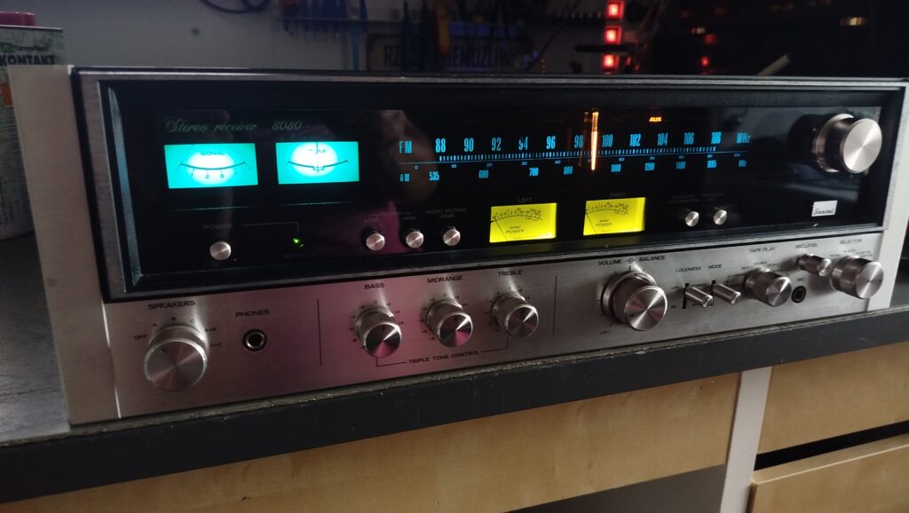 Czas złozyć front, przykrecić gałki skleic guziki, które często się odklejają , sprawdzić tuner, wejście phono, dokonać kilku pomiarów i potestować. Ostatecznie sansui wygląda tak.